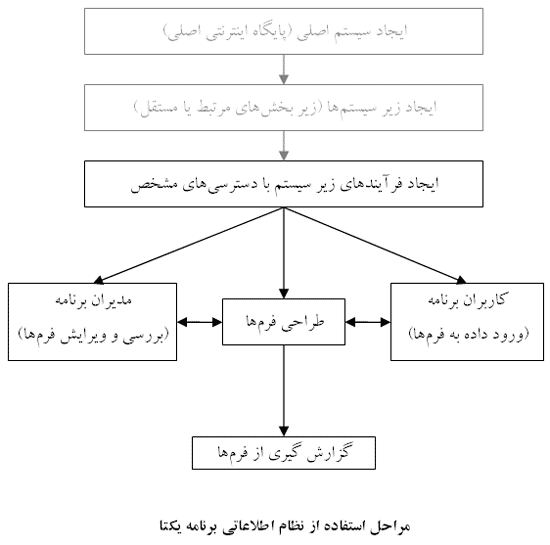 سامانه‌ی مدیریت اطلاعاتی زیربخشی در یکتاوب است که برای انجام سریع‌تر روندهای پیچیده‌ای مانند ساختن فرم‌های گوناگون، تکمیل و بررسی چند مرحله‌ای فرم‌ها، ثبت سفارش‌ها و رهگیری روندهای گردش کار به صورت الکترونیک طراحی شده است. ساختار کلی نظام جامع اطلاعاتی یکتاوب چنین است: